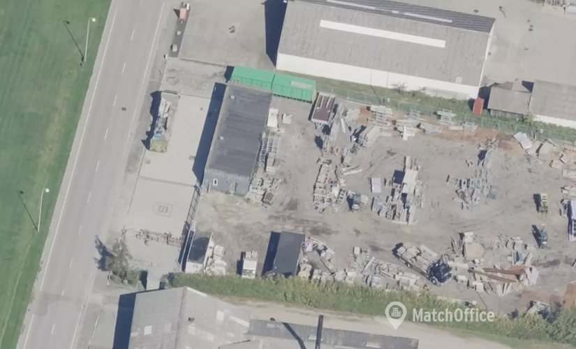 Velbeliggende erhvervsgrund i Borup med 136 m² lagerbygning indhegning og elektronisk port. Byggeret på 1.765 m².