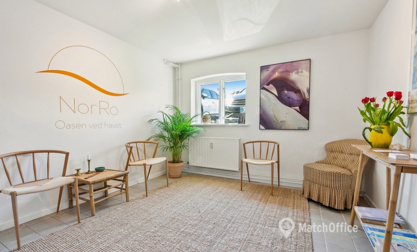 Lejemålet er i dag indrettet med tre store behandlings-/kontorrum, et køkken samt et rummeligt venteværelse, hvilket giver gode muligheder for både selvstændige behandlere eller en mindre virksomhed.