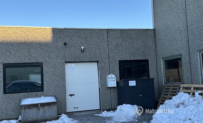 2,8 m til loft. 450 kr. pr. m2. Port 1,5 x 2,5 m.