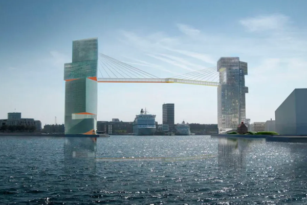 Tilbage i 2008 præsenterede den verdenskendte USA-tegnestue Steven Holl Architects et spektakulært projekt, hvor to kontortowers forbundet af en gangbro skulle danne portal og forbinde spidsen af Langelinie med Marmormolen.